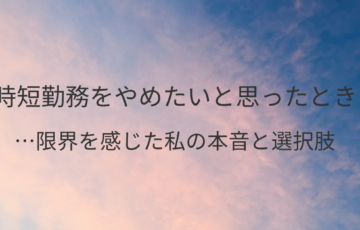 時短勤務で働いていると、 「もう限界かもしれない」「いっそやめた方がいいのかな」 そんなふうに感じることはありませんか? 私も、仕事と育児の両立に余裕がなくなり、何度も「やめたい」と思ったことがあります。 頑張りたい気持…