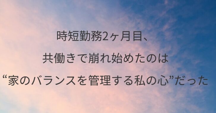 時短勤務2ヶ月目、共働きで崩れ始めたのは“家のバランスを管理する私の心”だった